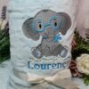 personalizado com boneco bordado e nome , quando finalizar a encomenda escreva no campo notas de encomenda a cor e o bordado pretendido.